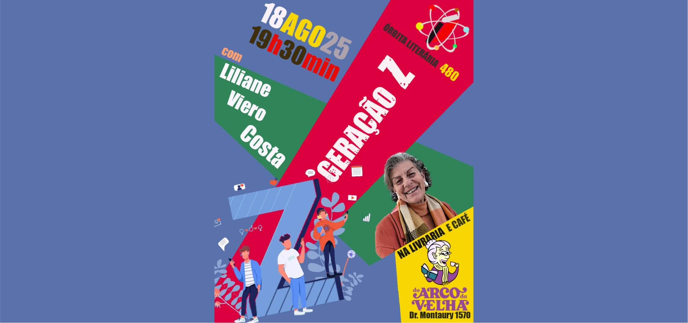 Na próxima segunda-feira, dia 18 de agosto, às 19h30, será realizada mais uma edição do Órbita Literária, na Livraria e Café Do Arco da Velha. O tema do evento será a Geração Z e contará com apresentação da professora Liliane Viero Costa, integrante da diretoria do Sinpro/Caxias.
