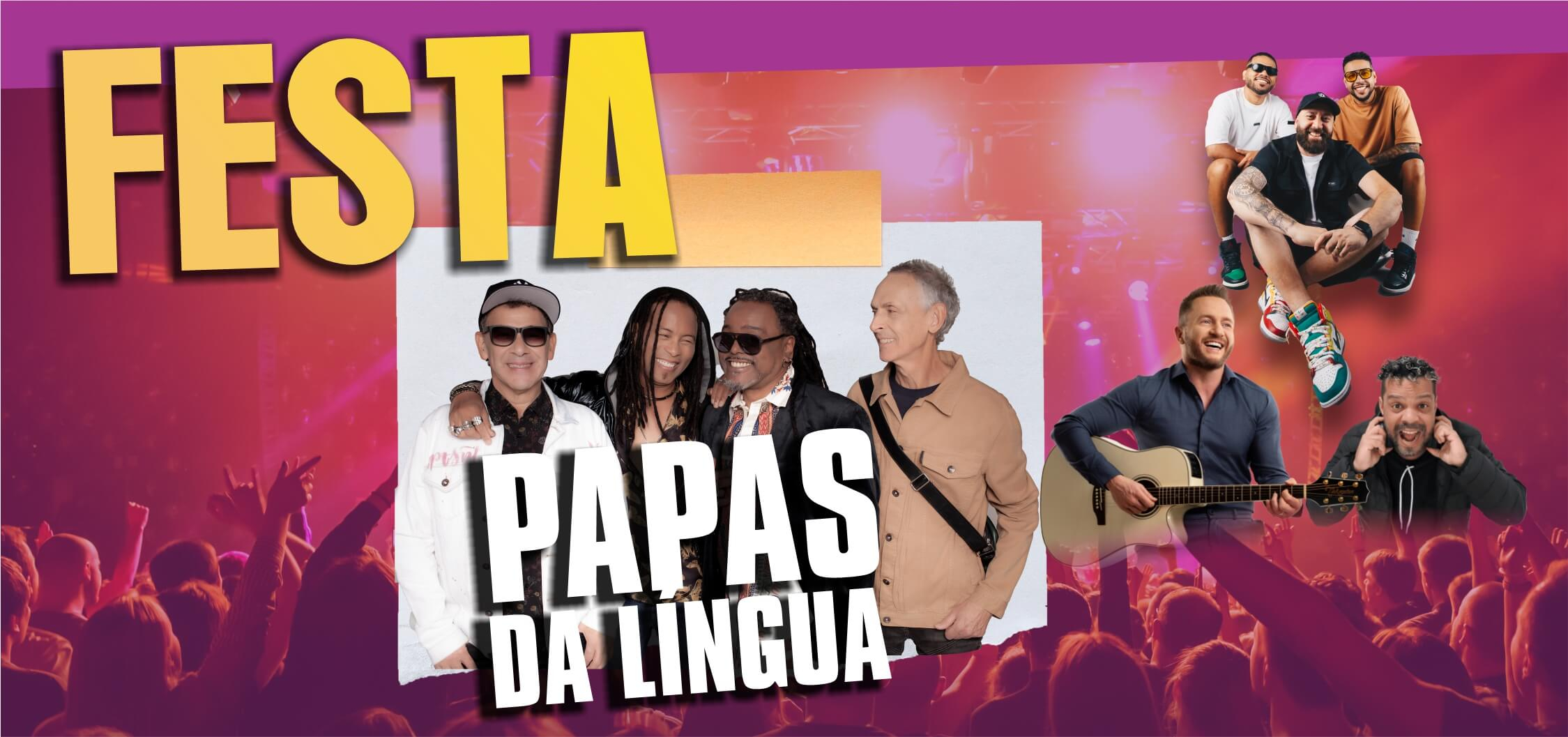 Na tarde do sábado de 29 de novembro de 2025, a partir das 14h, os Pavilhões da Festa da Uva serão palco de uma Festa* que vai trazer espetáculos musicais, entre eles o show do grupo Papas da Língua.