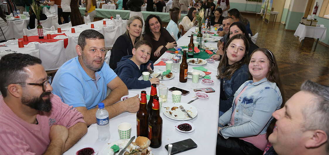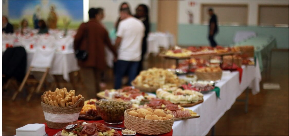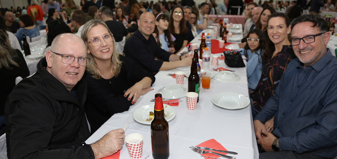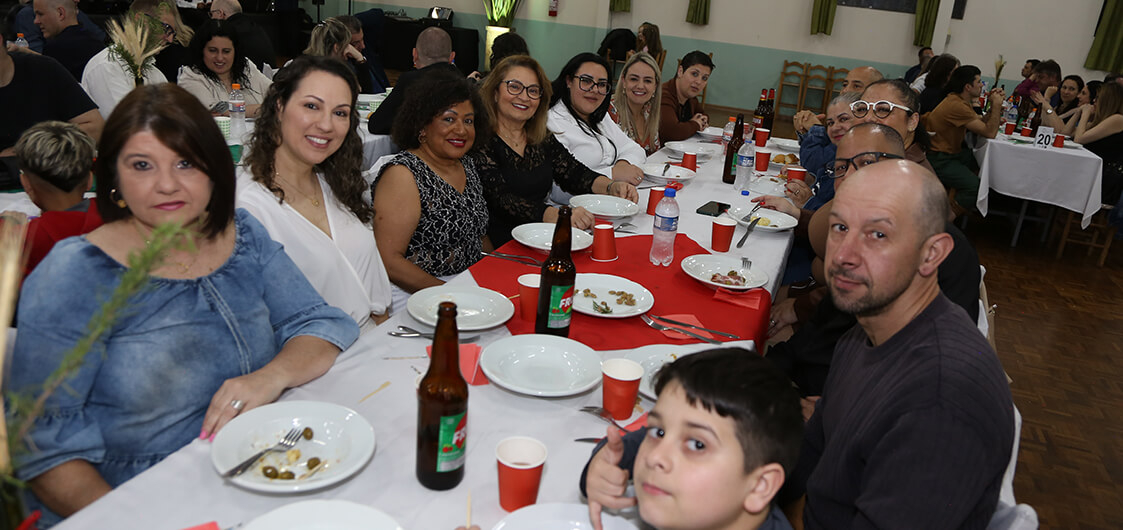 Centenas de professores se dirigiram ao salão da comunidade Sagrada Família para participar do Jantar dos Professores com temática italiana.